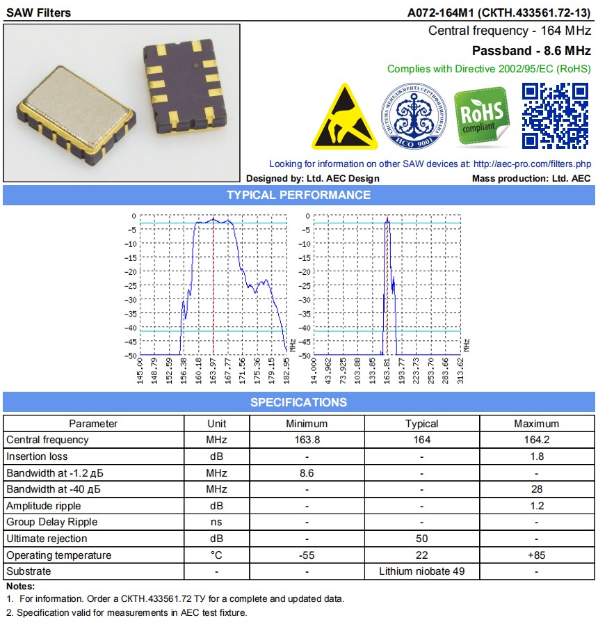 A072-164M1,AEK安克SAW濾波器,石英貼片晶振,6G無線晶振,7050mm晶振,小體積晶振,參數表