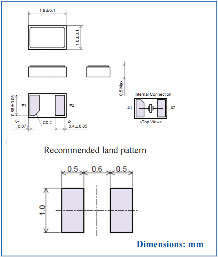 ABS05-32.768KHZ-9-T,1610mm,Abracon品牌,SMD晶體,ABS05,可穿戴設備晶振,尺寸圖