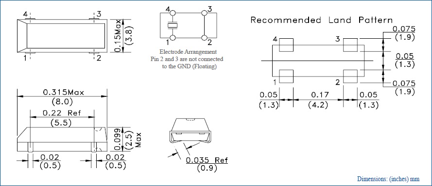 ABS25-32.768KHZ-6-T音叉晶體,艾博康無源晶振ABS25 尺寸圖