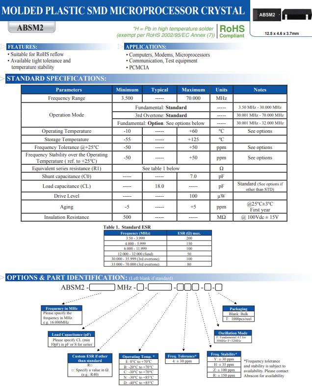 | ABSM2-50.000MHZ-4-T | Abracon晶振 | ABSM2 | MHz Crystal | 50MHz |