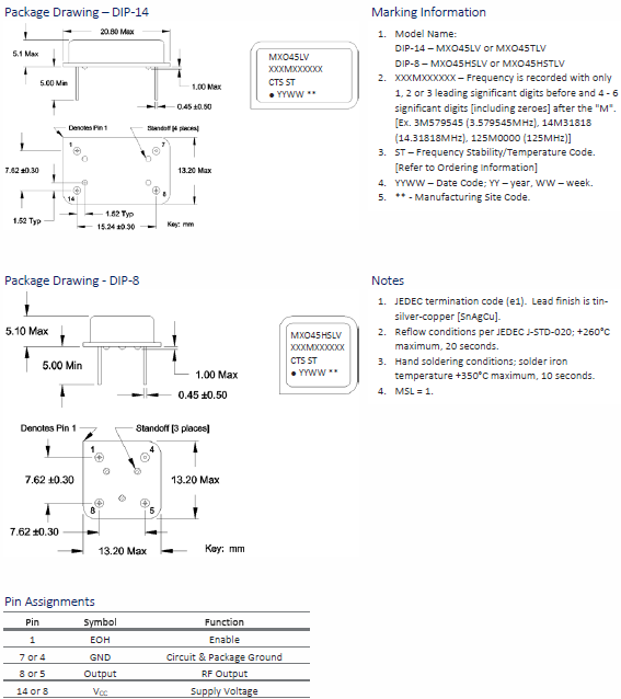 | MXO45HSLV-2C-50M0000 | CTS晶振 | MXO45HSLV | 50MHz | ±100ppm | 8-DIP, 4 Leads (Half Size, Metal Can) |
