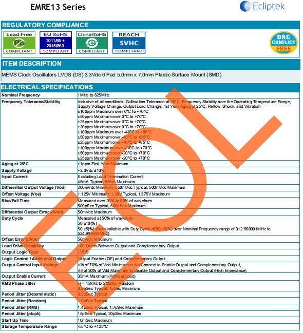 ECLIPTEK晶振公司將有效率的使用自然資源和能源,以便從源頭減少廢物產(chǎn)生和排放.我們將在關(guān)注于預(yù)防環(huán)境和安全事故,保護公眾健康的同時,努力改進我們的操作.我公司將積極參與加強公眾環(huán)境、健康和安全意識的活動,提高公眾對普遍的環(huán)境、健康和安全問題的注意. EMRE13可編程振蕩器,日蝕歐美晶振,EMRE13-C2H-12.000M-TR晶振.