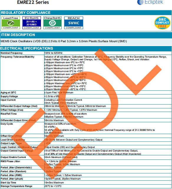 EMRE22時鐘晶體振蕩器,日蝕歐美晶振,EMRE22-C2H-20.000M-TR晶振,5032mm體積的石英晶體振蕩器,有源晶振,該產品可驅動2.5V的溫補晶振,壓控晶振,VC-TCXO晶體振蕩器產品,電源電壓的低電耗型,編帶包裝方式,可對應自動高速貼片機自動焊接,及IR回流焊接(無鉛對應),為無鉛產品,超小型,質地輕.產品被廣泛應用到集成電路,程控交換系統,無線發射基站.