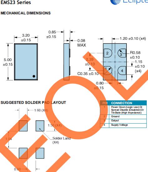 日蝕歐美晶振,EMS23有源晶體,EMS23CHA-24.000M-TR振蕩器,5032mm體積的石英晶體振蕩器,有源晶振,該產品可驅動2.5V的溫補晶振,壓控晶振,VC-TCXO晶體振蕩器產品,電源電壓的低電耗型,編帶包裝方式,可對應自動高速貼片機自動焊接,及IR回流焊接(無鉛對應),為無鉛產品,超小型,質地輕.產品被廣泛應用到集成電路,程控交換系統,無線發射基站.