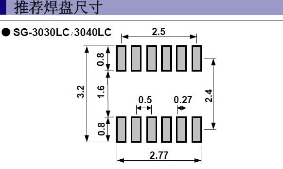 愛普生晶振,SG-3030LC晶體振蕩器,以太網晶振,貼片石英晶體,體積小,“SG-3030LC 32.7680KB6: PURE SN”焊接可采用自動貼片系統,產品本身小型,表面貼片晶振,特別適用于有小型化要求的電子數碼產品市場領域,因產品小型,薄型優勢,耐環境特性,包括耐高溫,耐沖擊性等,在移動通信領域得到了廣泛的應用,晶振產品本身可發揮優良的電氣特性,滿足無鉛焊接的高溫回流溫度曲線要求.