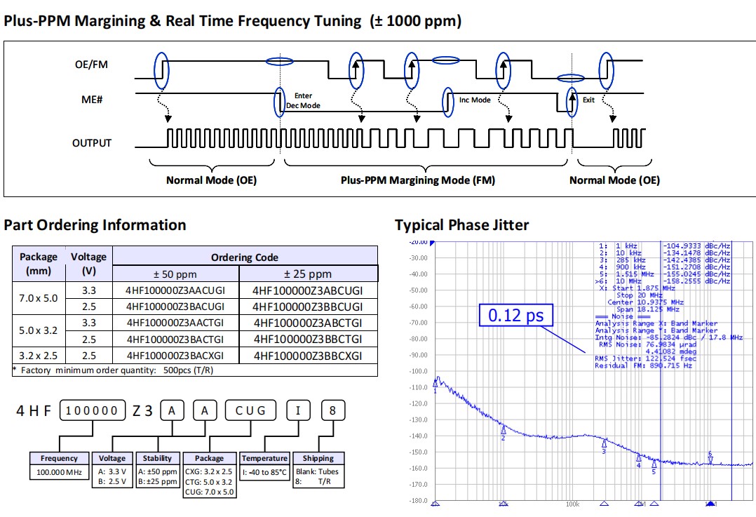瑞薩MEMS振蕩器,4HF100000Z3BACTGI8,超低相位噪聲晶振,六腳貼片晶振,6G以太網應用晶振,參數表
