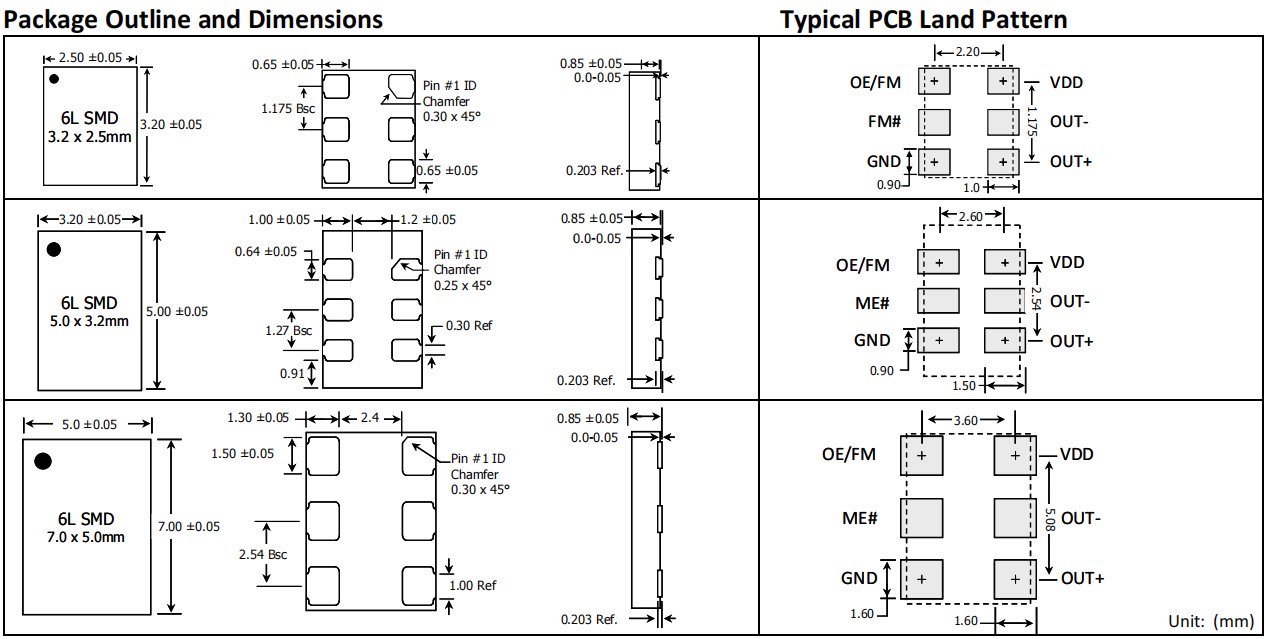 標準軟件包: 7.0x5.0mm / 5.0x3.2mm / 3.2x2.5mm差分晶振