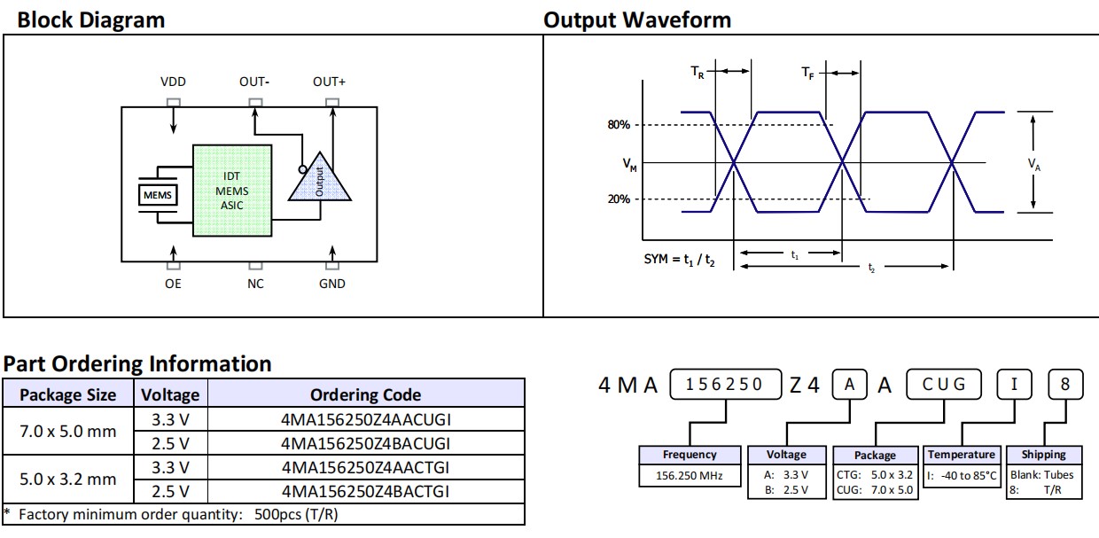 | 4MA066000Z3AACTGI8 | Renesas晶振 | MEMS OSC XO 66.0000MHZ LVPECL |