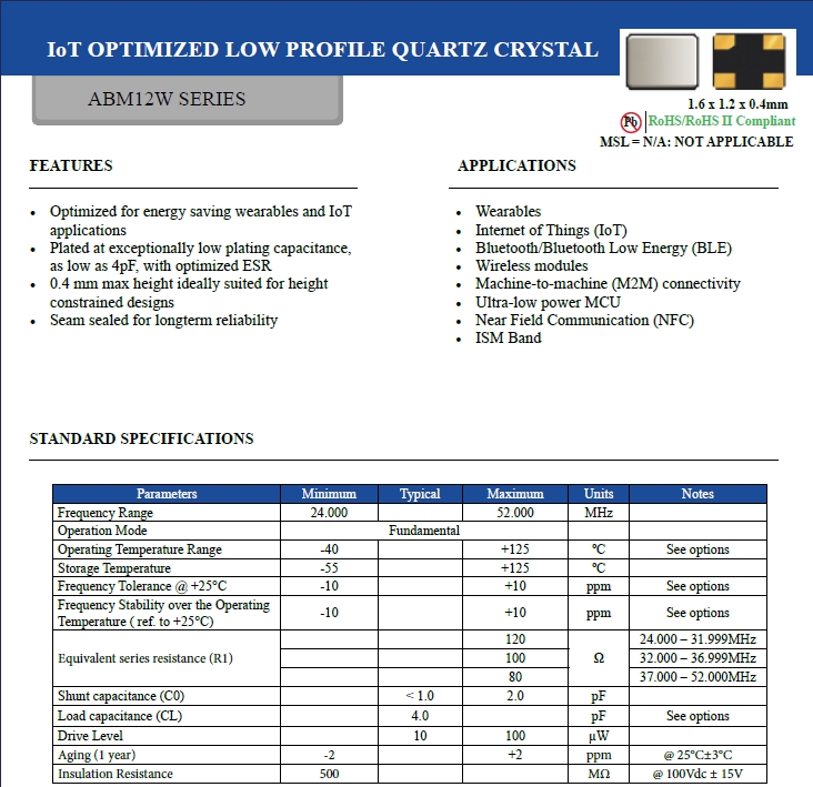 Abracon晶振,ABM12-115-26.000MHZ-T3晶振,ABM12M無源晶振
