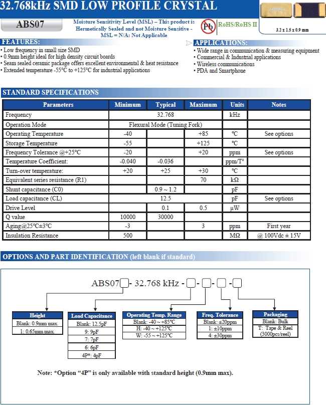 | Abracon晶振 | 單位 | ABS07晶振 | 石英晶振基本條件 |
