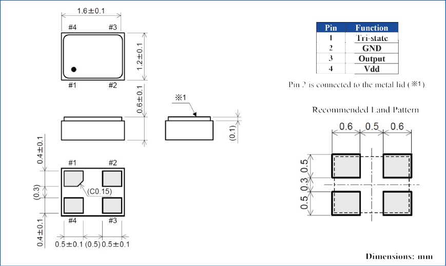 1612mm有源晶振可能會在某些條件下受到損壞.例如從桌上跌落或在貼裝過程中受到沖擊.如果產品已受過沖擊請勿使用.