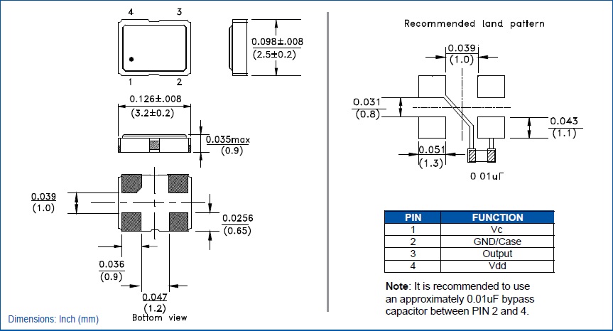 建議將輸出負載安裝在盡可能靠近高精度晶振的地方(在20mm范圍之間).