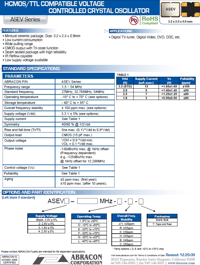 Abracon晶振,有源晶振,ASEV石英振蕩子.小型貼片石英晶振,外觀尺寸具有薄型表面貼片型石英晶體諧振器,特別適用于有小型化要求的市場領域,比如智能手機,無線藍牙,平板電腦等電子數(shù)碼產品.晶振本身小型,薄型,重量輕,晶體具有優(yōu)良的耐環(huán)境特性,如耐熱性,耐沖擊性.