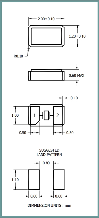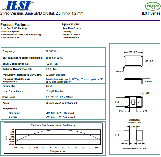 | 頻率溫度特征 | f_tem | ±50× 10-6 /-30°C~+85°C | 超出標準的規(guī)格請聯(lián)系我們. |