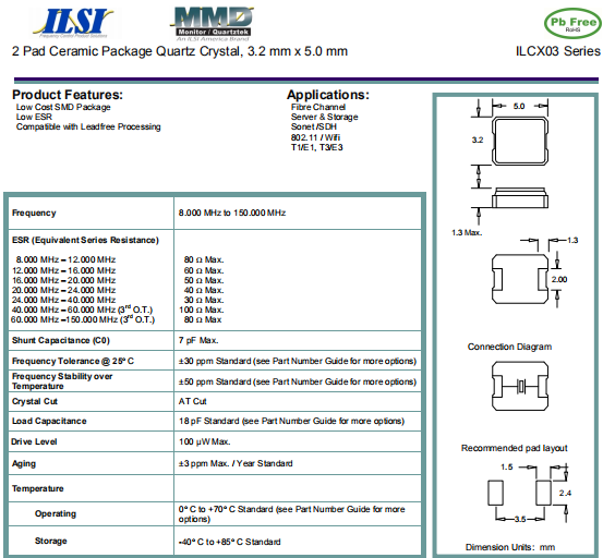 | ILSI晶振 | 單位 | ILCX03晶振 | 石英晶振基本條件 |
