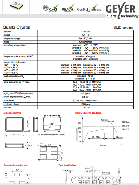 | Geyer晶振 | 單位 | KX-6晶振 | 石英晶振基本條件 |