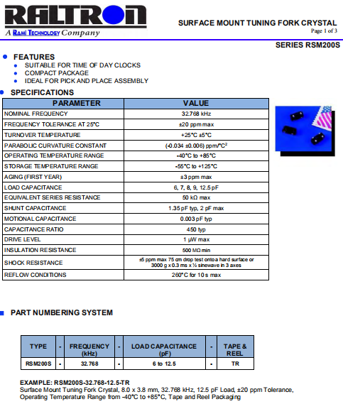 RALTRON晶振,RSM200S晶振,高精度晶振.貼片表晶32.768K系列具有超小型,薄型,質地輕的表面貼片音叉型石英晶體諧振器,晶振產品本身具備優良的耐熱性,耐環境特性,在辦公自動化,家電領域,移動通信領域可發揮優良的電氣特性,符合無鉛標準,滿足無鉛焊接的回流溫度曲線要求,金屬外殼的石英晶振使得產品在封裝時能發揮比陶瓷晶振外殼更好的耐沖擊性能.