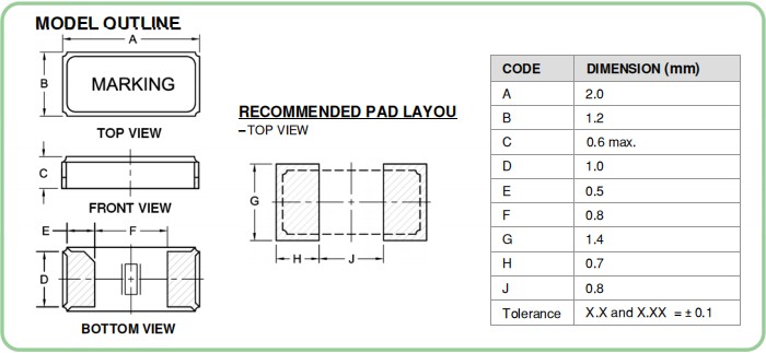 | 頻率溫度特征 | f_tem | ±50× 10-6 /-30°C~+85°C | 超出標準的規(guī)格請聯(lián)系我們. |