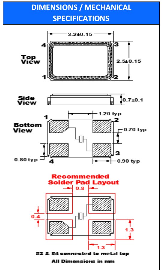 | Aging per year (@ 25°C) | ±5 PPM |
