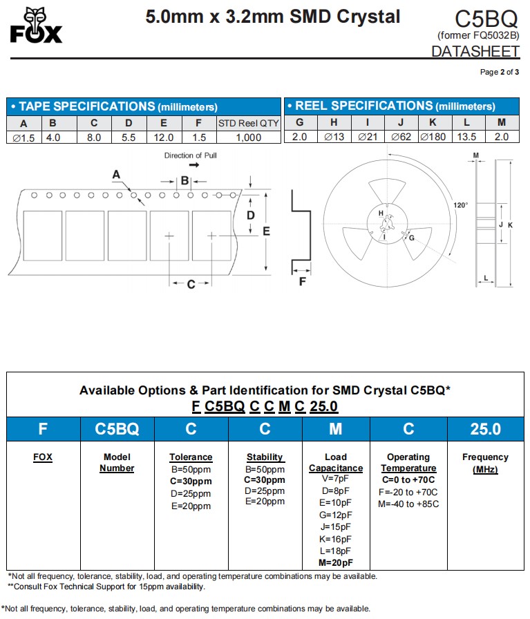 | FQ5032BR-20.000 | Fox晶振 | C5BQ | 20MHz | 4-SMD, No Lead | ±50ppm |