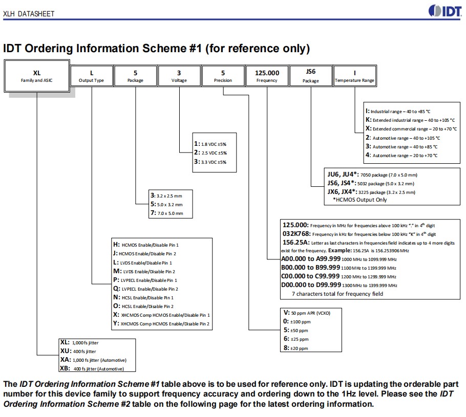 | XLH336125.000JX4I | IDT晶振 | OSC XO 125.0000MHZ HCMOS SMD | XLH | 125MHz |