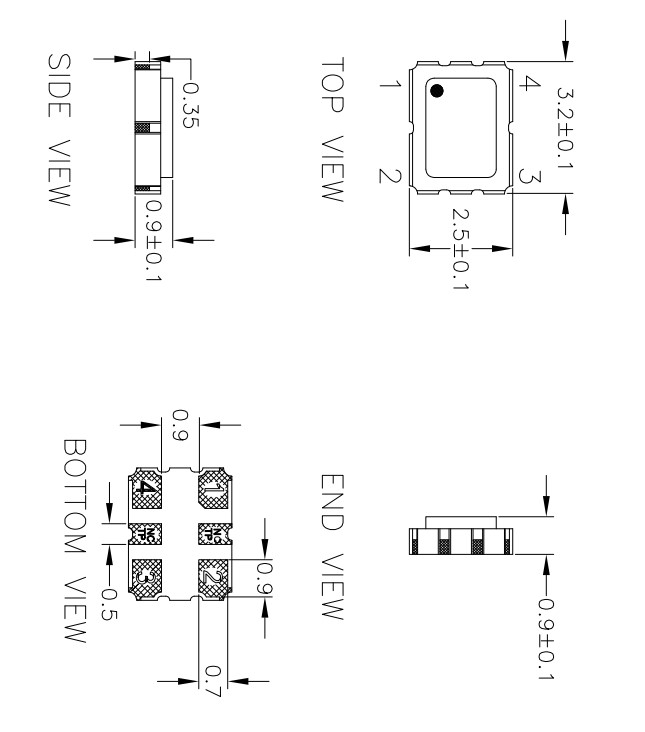 IDT有源晶振,XLH335012.288000I,低噪聲6G網(wǎng)絡(luò)晶振,XLH336125.000JX4I,HCMOS晶體振蕩器,尺寸圖