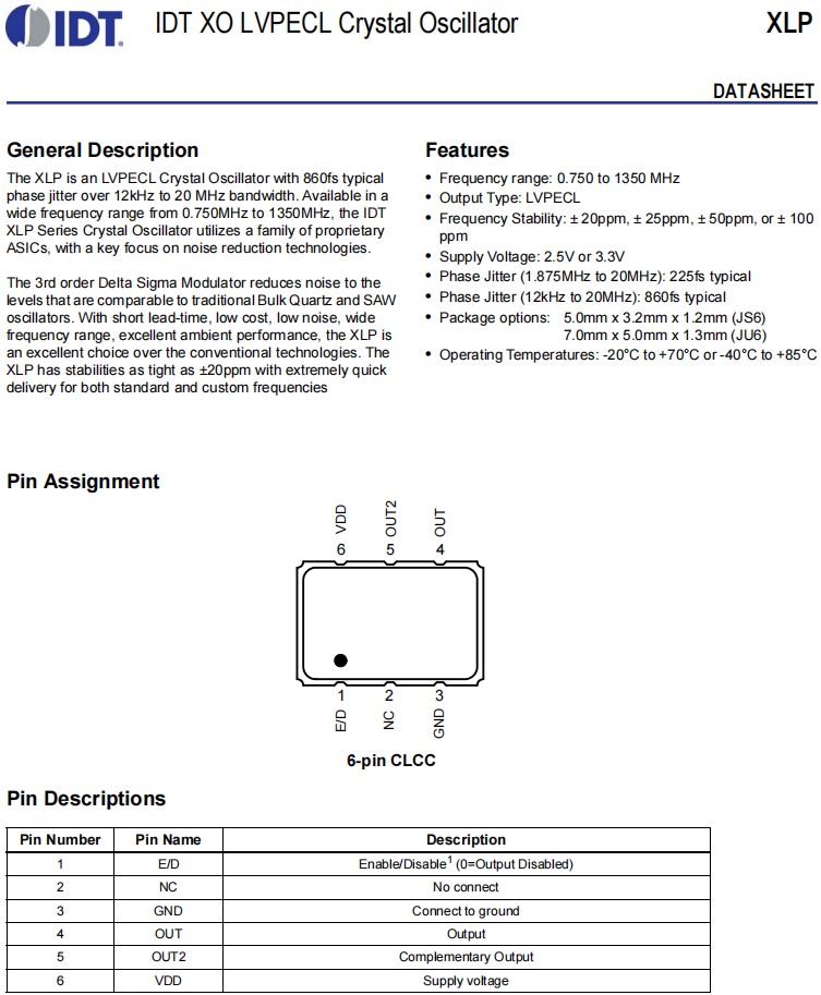 | XLP730C50.000000X | IDT晶振 | OSCILLATOR XO 1.25GHZ LVPECL SMD | XPRESSO™ FXO-PC73 | 1.25GHz |