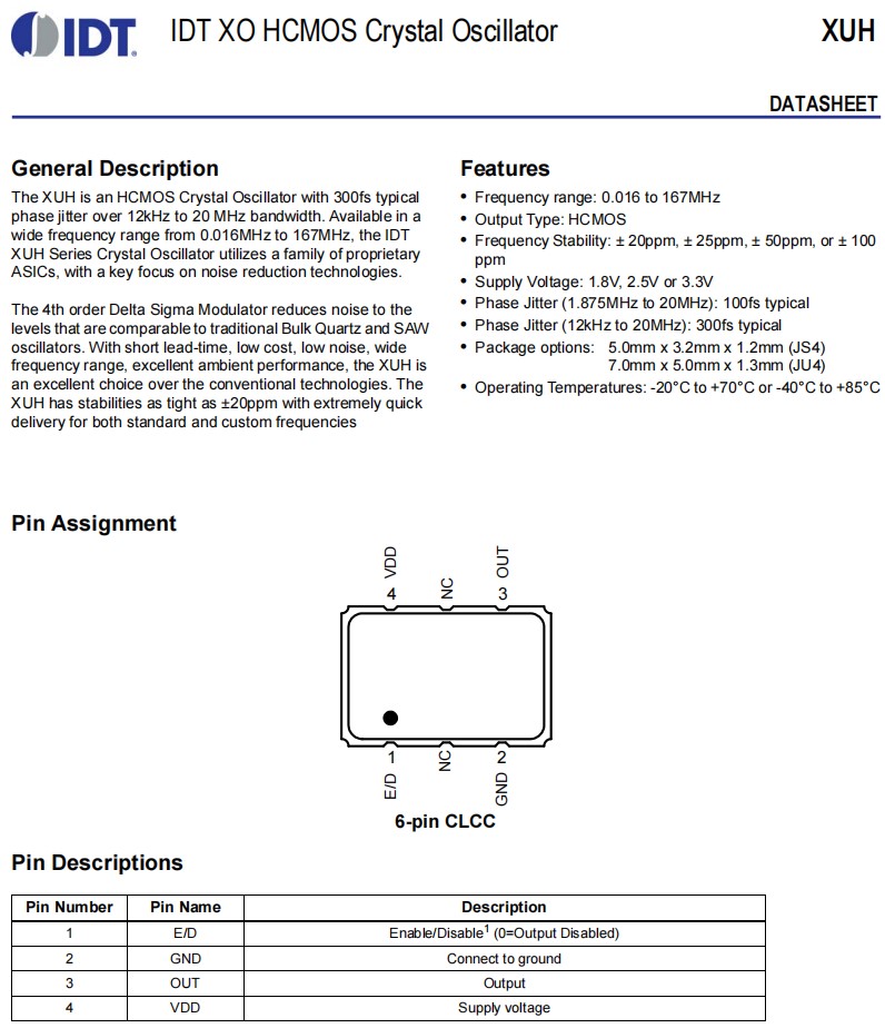 | XUP535125.000JS6I | IDT晶振 | OSC 125MHZ SMD | XUP | 125MHz |