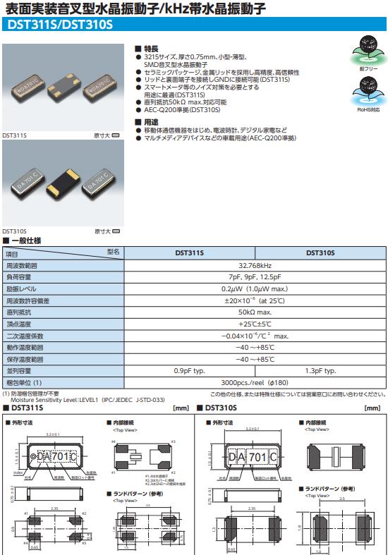 DST310S通信設備晶體,KDS晶振,1TJF0SPDP1AA00G諧振器,32.768KHZ時鐘晶體具有小型,薄型,輕型的貼片晶振表面音叉型晶體振蕩器,產品具有優良的耐熱性,耐環境特性,可發揮晶振優良的電氣特性,符合RoHS規定,滿足無鉛焊接的高溫回流溫度曲線要求,金屬外殼的封裝使得產品在封裝時能發揮比陶瓷振蕩器外殼更好的耐沖擊性.