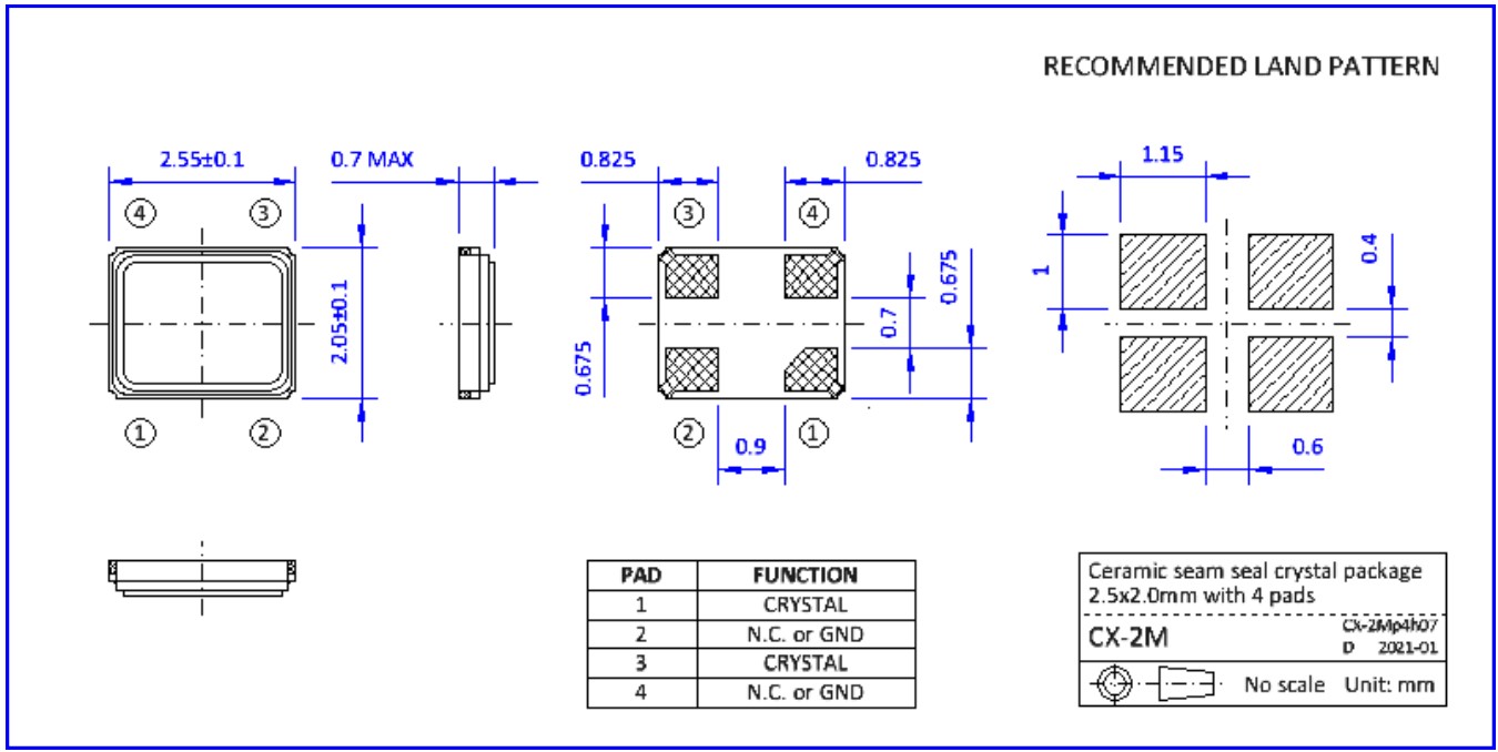 NKG車規晶振,S2M16.0000F18M23-EXT,6G無線模塊晶振,尺寸圖