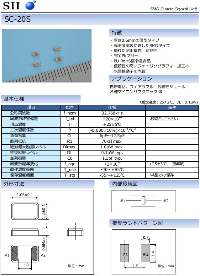| Q-SC20S0321070CAFF | Seiko精工晶振 | SC-20S | kHz Crystal (Tuning Fork) | 32.768kHz | ±10ppm |