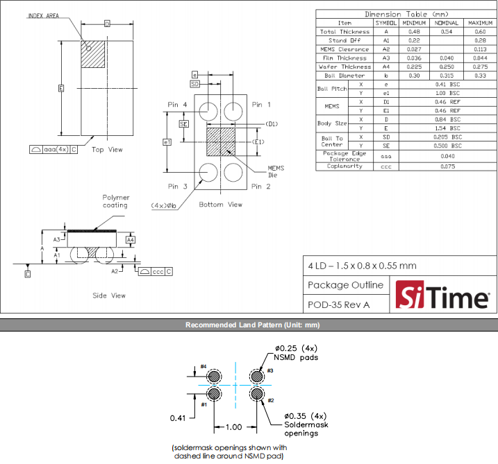 SiTime超小型晶振,SiT1569AI-J3-33E-0462.500000,便攜式醫(yī)療6G晶振,LVCMOS振蕩器,低電壓晶振,尺寸圖