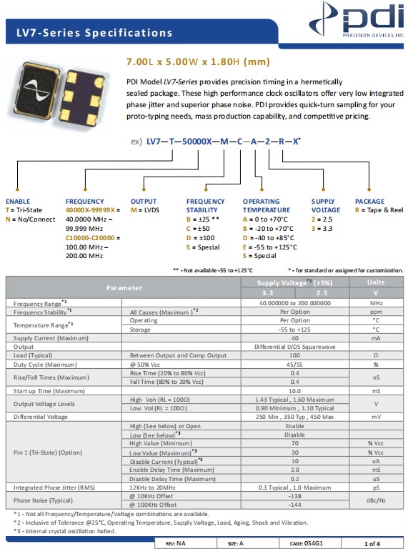 威爾威7050mm振蕩器,LV7-T-24000X-M-C-A-2-R-X,低抖動晶振,參數表