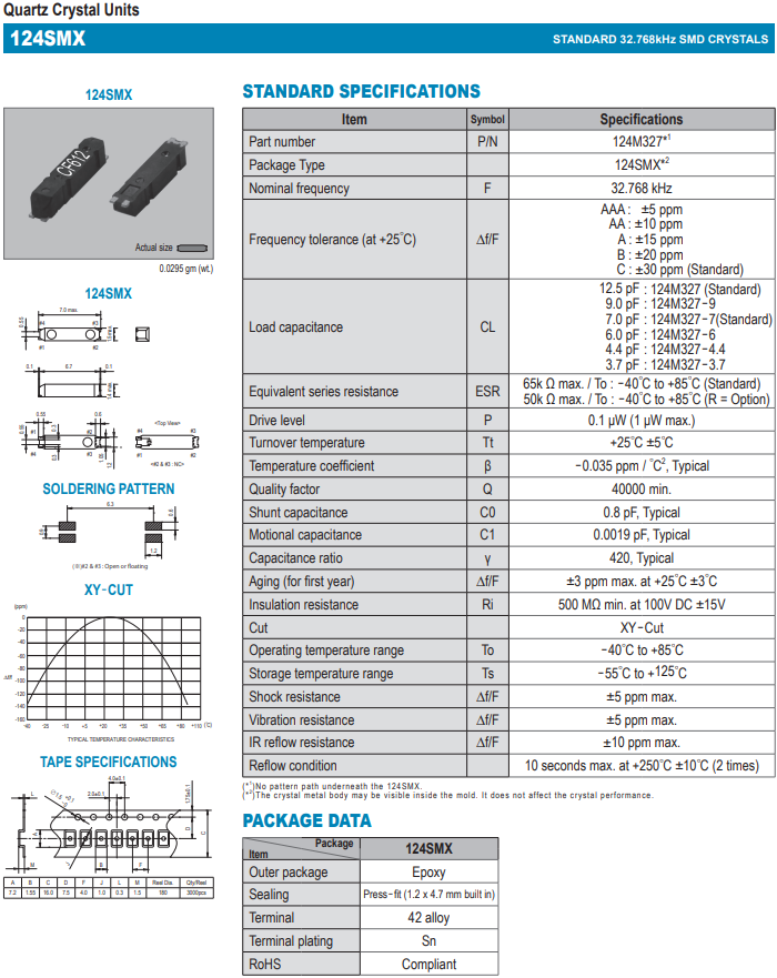 | SMI晶振 | 單位 | 124SMX晶振 | 石英晶振基本條件 |