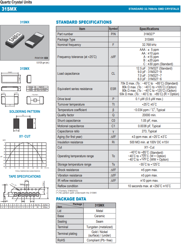 SMI晶體,石英晶體諧振器,31SMX晶體音叉表晶.該類型產品符合無鉛認證,滿足無鉛焊盤的回流溫度曲線要求,金屬外殼的石英晶振使得產品在封裝時能發揮比陶瓷晶振外殼更好的耐沖擊性能.