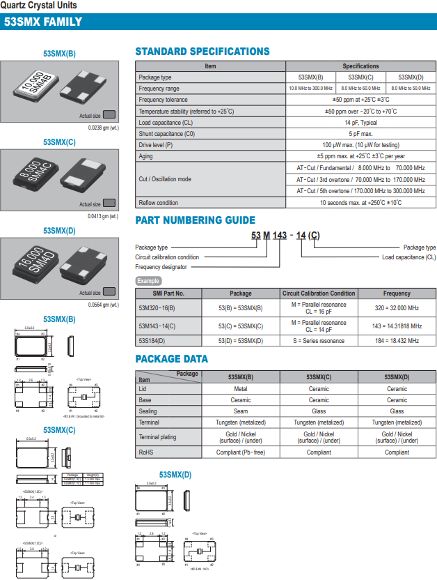 | SMI晶振 | 單位 | 53SMX(B)晶振 | 石英晶振基本條件 |