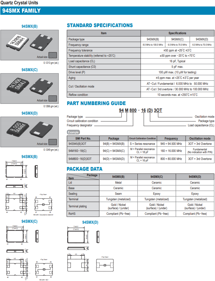 | SMI晶振 | 單位 | 94SMX(B)晶振 | 石英晶振基本條件 |