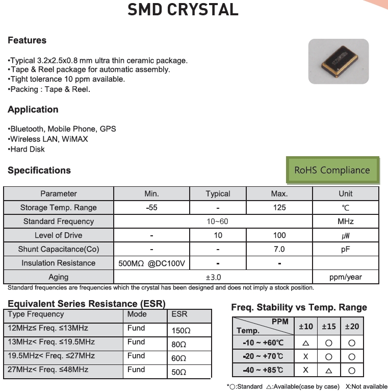 | 頻率公差 | f_— l | ±10,±15,±20ppm |