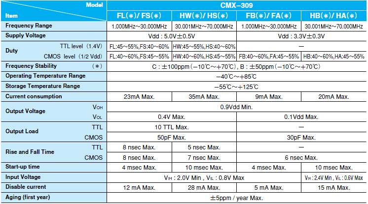 CMX-309陶瓷面晶振,CITIZEN進口晶振,通訊設備晶體振蕩器,廣泛的輸出頻率鎖相環技術,快速樣品交付質量和短的交貨時間生產,允許輸出低電流消耗,函數(OE)或站在函數(備用).適合各種應用程序通訊設備、AV設備和測量儀器.