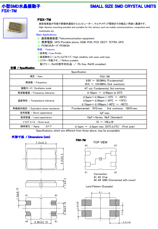 | 富士晶振 | 單位 | FSX-7M晶振 | 石英晶振基本條件 |