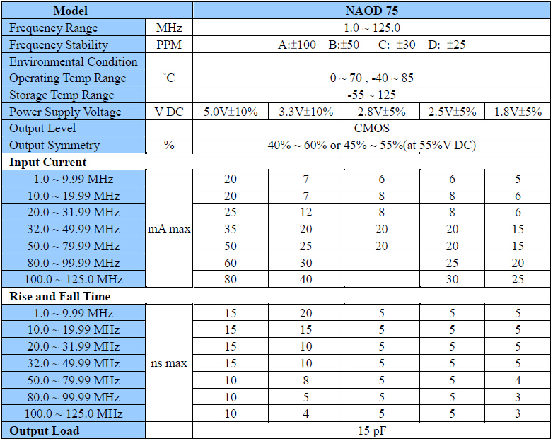 NAOD-75振蕩器,NSK石英晶振,5070mm有源晶振,CMOS輸出晶體振蕩器,頻率范圍1.0 to 125.0MHZ,尺寸大小7.0*5.0*1.6mm,無(wú)縫焊接具有,優(yōu)良的可焊性,符合無(wú)線環(huán)保要求,該款SMD振蕩器主要應(yīng)用于:PCMCIA卡,CCD,便攜式電,無(wú)線局域網(wǎng).