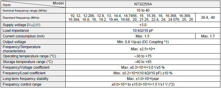 NT3225SA溫補(bǔ)晶振,NDK石英晶體振蕩器,GPS導(dǎo)航儀晶振,為對(duì)應(yīng)低電源電壓的產(chǎn)品(可對(duì)應(yīng) DC+1.7 V to +3.3 V.),高度:最高1.0 mm、體積:0.007 cm3、重量:0.024 g,小型、量輕,帶有AFC(頻率控制)功能,低消耗電流,表面貼片型產(chǎn)品(可對(duì)應(yīng)回流焊),無(wú)鉛產(chǎn)品,滿足無(wú)鉛焊接的回流溫度曲線要求.