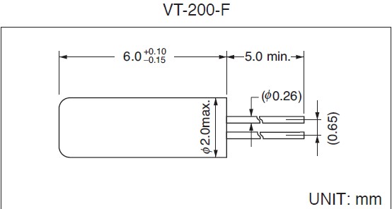 精工晶體諧振器,VT-200-F插件晶振,2*6mm圓柱晶振,“VT200F-6PF20PPM”緊湊的管狀封裝,光刻工藝,優良的耐沖擊性和環境特性,RoHS指令標準,完全無鉛,廣泛應用于實時時鐘,定時器,水/電/氣,儀表,遙控器,便攜式應用.