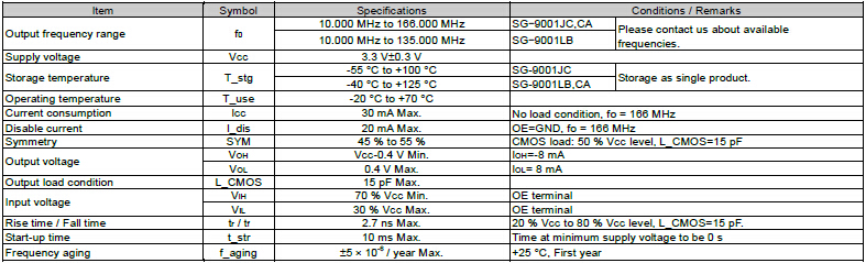 SG-9001CA可編程晶振,石英晶體振蕩器,EPSON打印機晶振,“SG-9001CA C20P 50.0000MC”外部尺寸7.0×5.0×1.4mm,頻率范圍10.0MHz to 166.0MHz,電源電壓3.3V Typ,頻率溫度特征±2.0×10-6Max,應用手機(CDMA,WCDMA,LTE),擴展比率范圍可編程選擇(中心或下部擴展,6個值),高精度和高頻率的穩定性能,非常好的減少電磁干擾的影響,是民用無線數碼產品最好的選擇,符合RoHS/無鉛.
